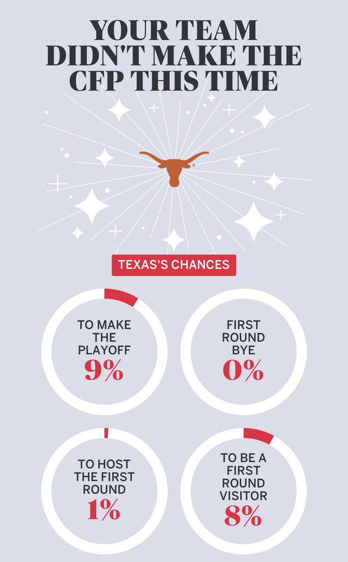 Not sure why they are so belligerent about this. Texas will probably be in CFP for the next 100 years. They can miss this year.