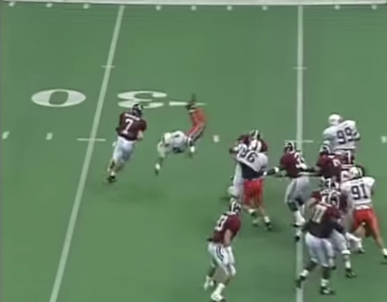 If so, I always thought this was cool as heck. See how far #54 goes out of bounds before he touches the ground