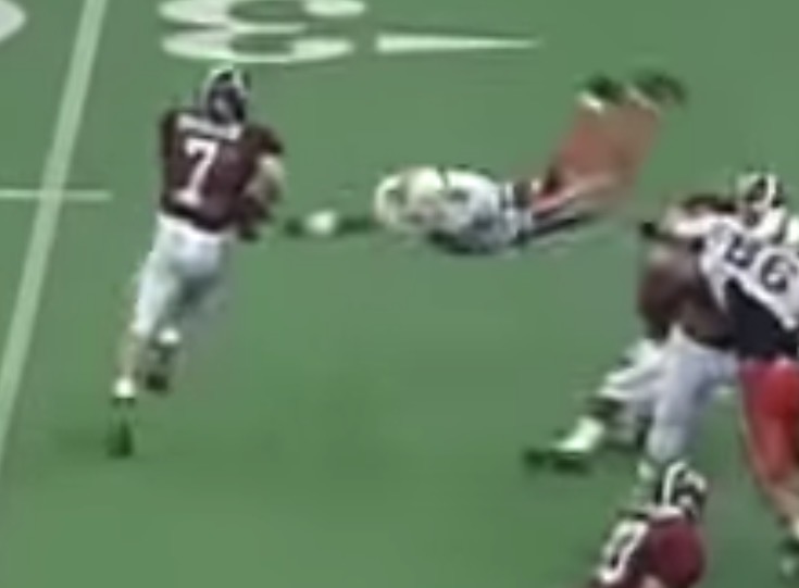 Not an Alabama fan, and not the most famous photo of that game (Teague was), but Lassic or Stacy flipping R Marley was great.