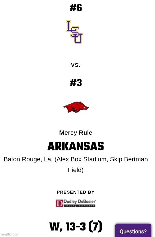 Vols played tight today. 2 hits Hogs looked pretty loose battering that soft Vols pitching Series ends tmrw
