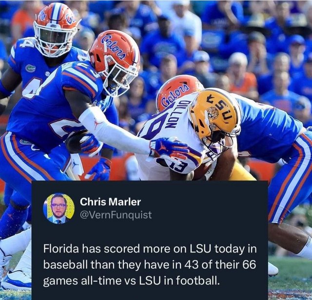 Also, LSU has a losing record to UF in football while I'm pretty sure they own the shite out of us in baseball.