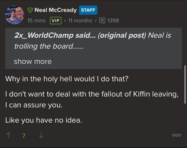 @Neal McCready i feel bad asking you this because it is not fair and has a 50% chance of being unfairly held over your head later…