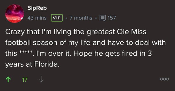 Yeah that dude is stupid. Kiffin leaving for Florida is more damaging to his legacy than him going to a rival of Ole Miss that we play every year?