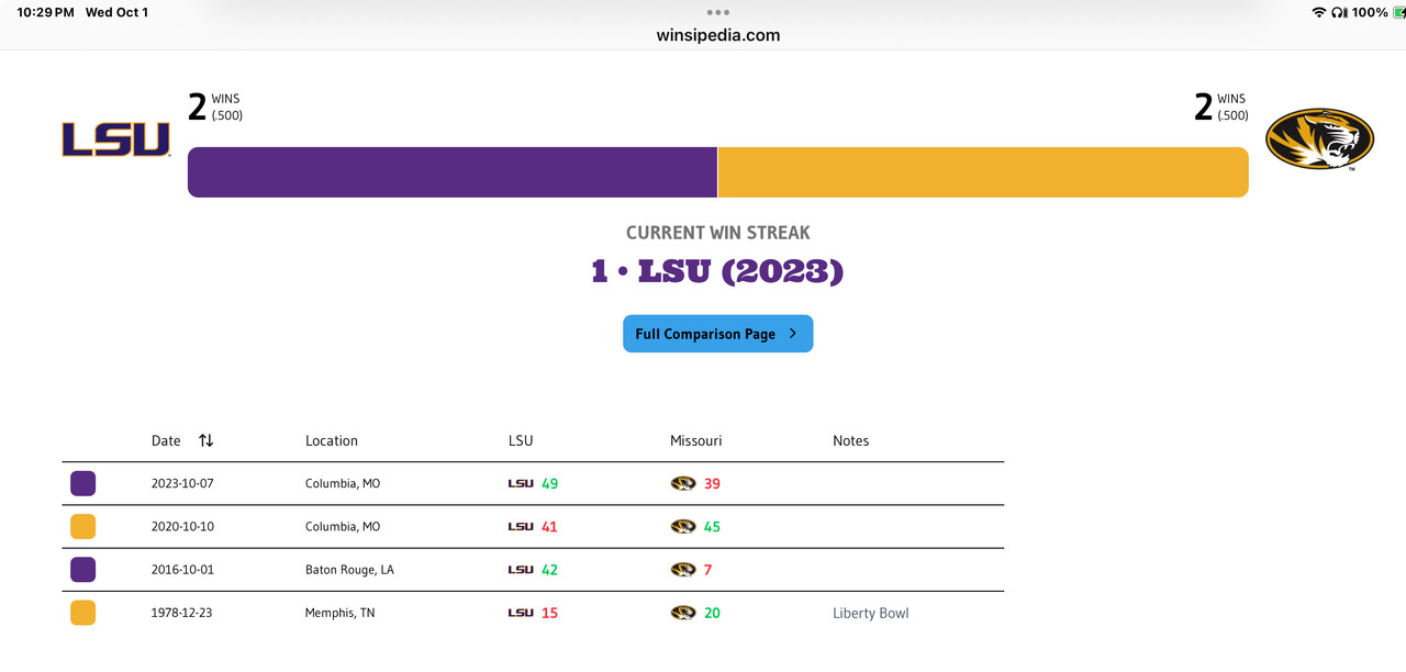 2-2 overall. LSU has a 2-1 advantage in SEC play. Missouri has a 1-0 advantage in the Liberty Bowl.