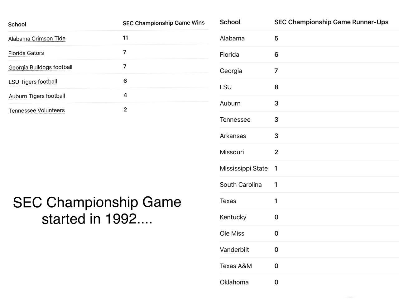 Not one school with a campus located west of the Mississippi River has ever won an SEC Football Championship.