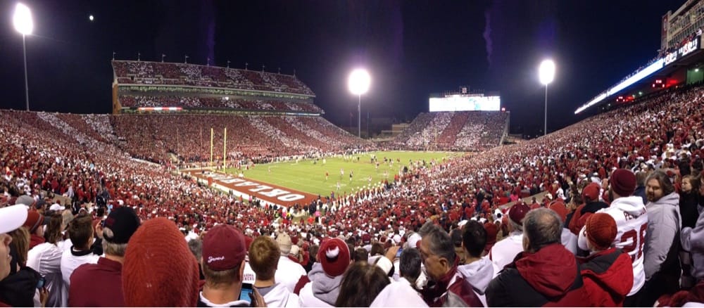 quote:True, but that doesn't mean he's wrong. The lights in Norman are in the corners, not along the sidelines, which can be a little weird for receiver's trying to pick up the ball from time to time. OU didn't get lights until the 90s, and so they stuck them in the easiest place to put them (having already built an upper deck on the west side).