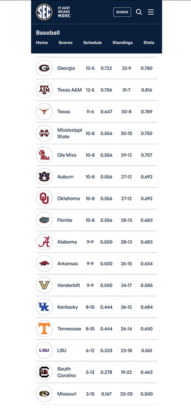 I opened this thread thinking I was gonna see the SEC baseball standings.