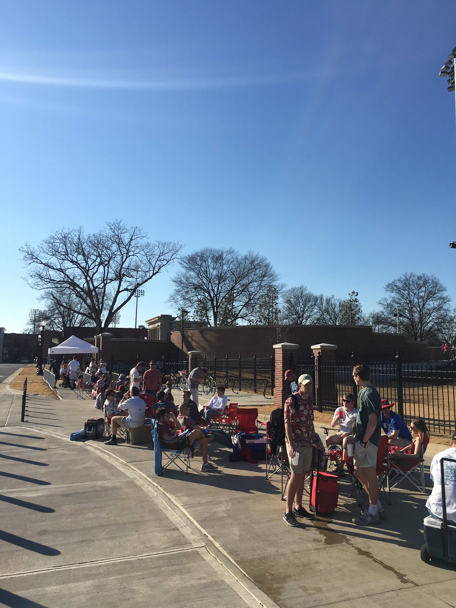 Our game doesn't start till tonight and we have fans lined up in the right field.