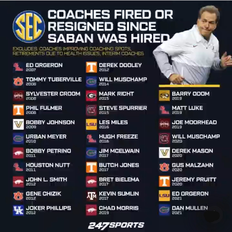 ETA: Saban has absolutely wrecked the SECW.