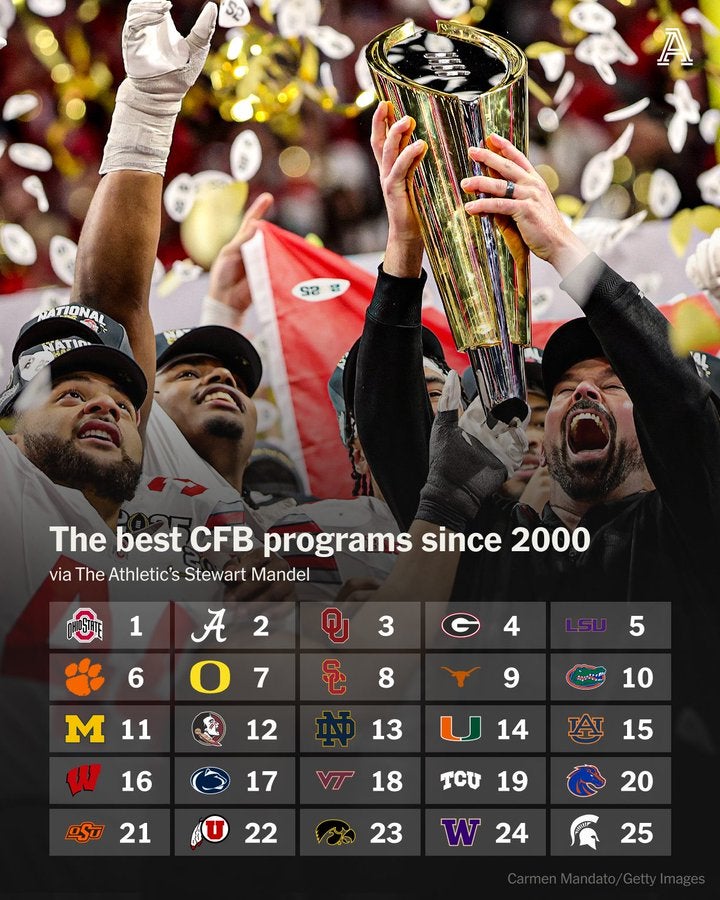 Yet they are ranked ahead of Alabama who has 6 national championships and 8 playoff appearances since 2000.