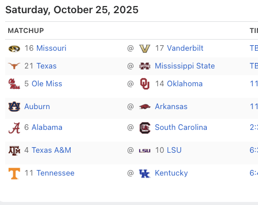 Fans in other conferences just don't get what they are missing by not being in the SEC. Every week there are multiple good games all day.