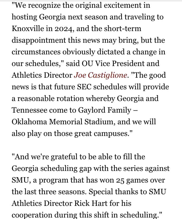 Got to love how OU is spinning replacing UGA with SMU as a top notch opponent.
