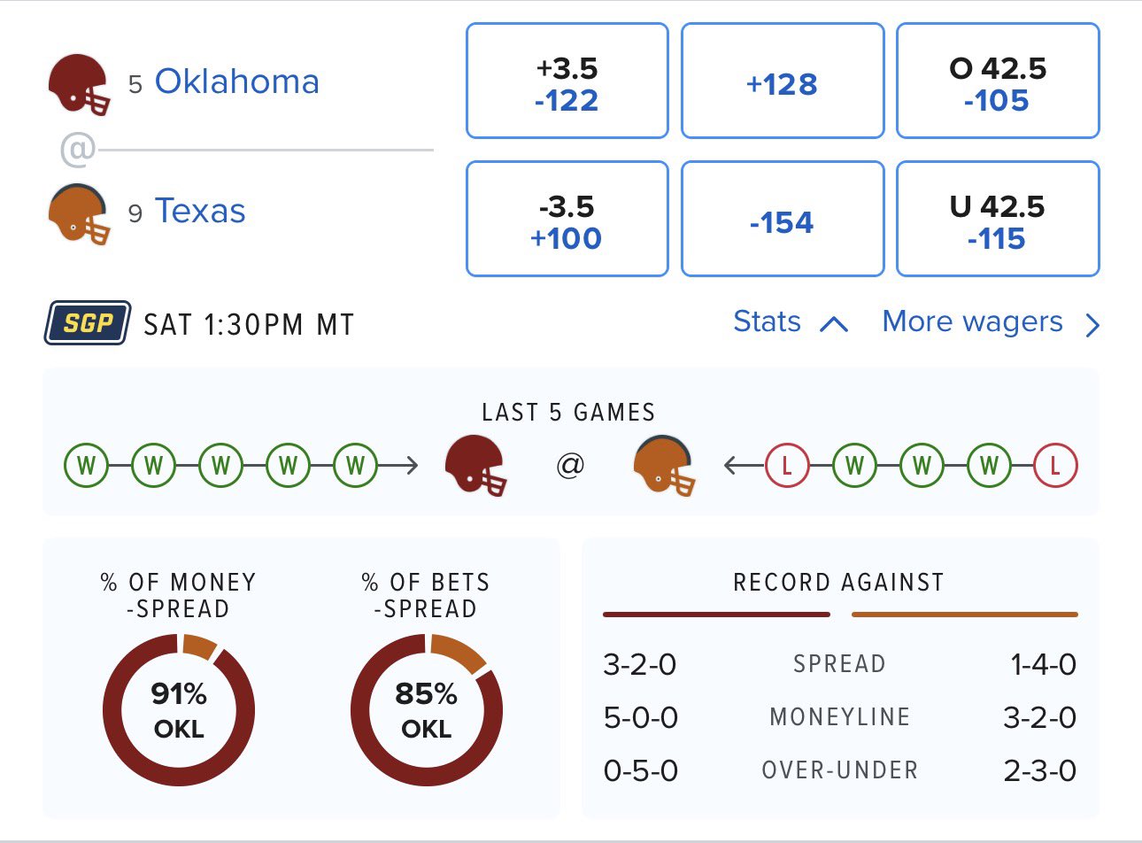 Vegas has Texas favored, but the money is on OU