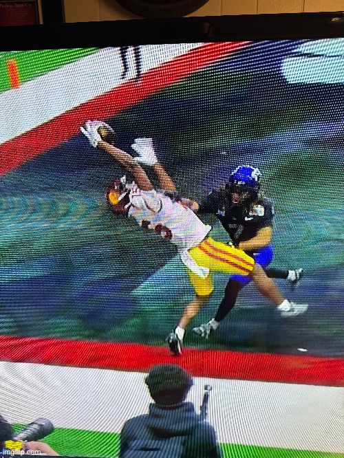 Sick TD catch by the Trojans receiver- Beckham like snag