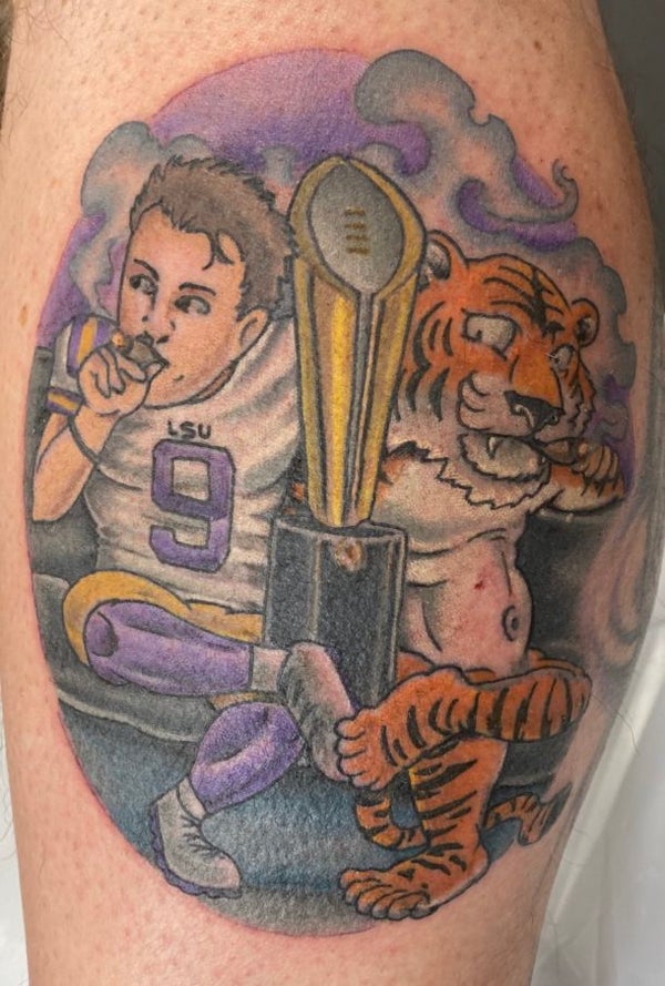 That's not his only LSU tattoo.