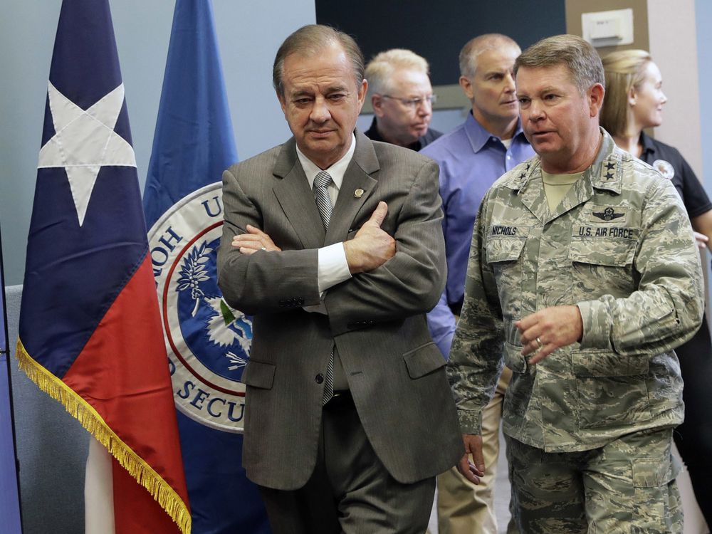 In this Sept. 14, 2017 photo, Commissioner John Sharp walks with Maj. Gen. John F. Nichols, right, following a briefing on Hurricane Harvey recovery efforts at the new FEMA Joint Field Office, in Austin, Texas. Sharp, the recovery czar over Texas' rebuild after Harvey, says his new job is "future-proofing" for the next disaster. How is Texas spending billions in federal aid in response to Harvey, among the costliest U.S. storms on record? State records do not distinguish storm-related expenses, making fund tracking and accountability all but impossible. Disaster recovery experts say the lack of transparency could hinder coordination, encourage fraud and squander an opportunity to not only rebuild, but mitigate the risks of the next monster storm. PHOTO BY ERIC GAY /AP Posted on 11/12/23 at 6:54 pm to Farmer1906