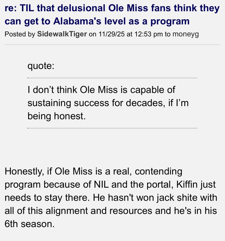 I don't have this belief that Kiffin is going to stay at LSU forecer like Ole Miss fans apparently did, I'm not going to melt like y'all did when he leaves either.