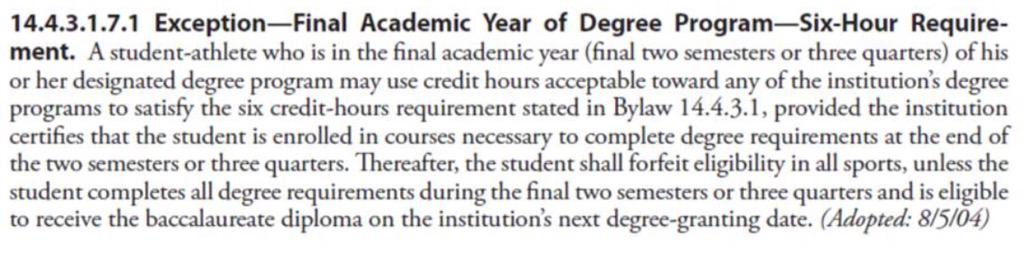 Senior Foster didn't make high enough grades in only 6 hours of classes to qualify for his major. Yet somehow his low grades for SR level classes in sports management can go towards another major that isn't sports management. How is that possible? Sounds very community collegeish.