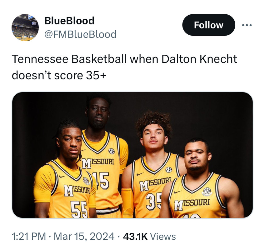 I heard Tennessee didn't Knecht on many 3-pointers today.