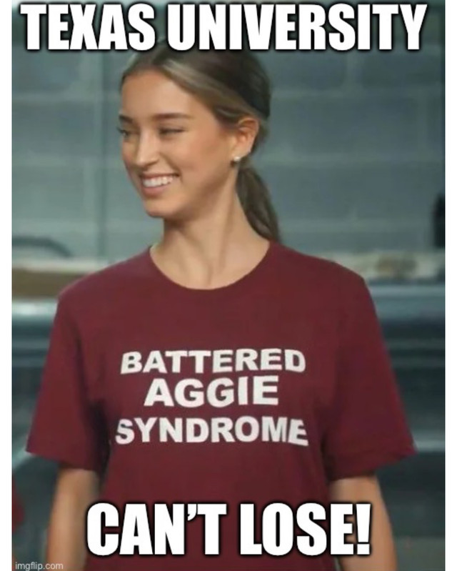 Sadly, it’ll be at least another year. Game means nothing to aggy. Texas fighting for its life! They’re at home, and Arch has been playing like a Heisman contender lately!
