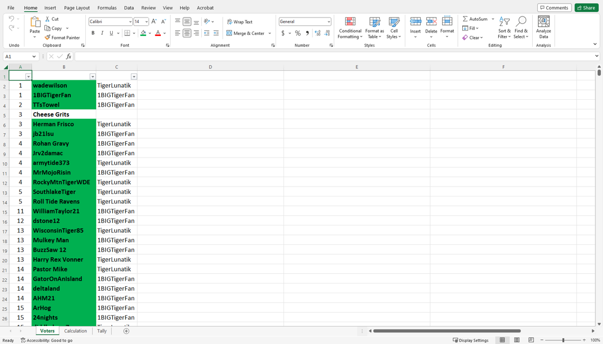 Email me at wolfhound45.td@gmail.com if you would like the spreadsheet I am using. I have been tracking votes by page and just went through them again.