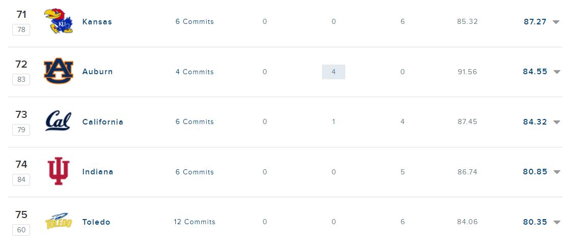 Auburn currently has commits from or leads for 0 Top 25 players, 0 Top 50 players and 0 Top 100 players. Also 0 Top 2 JUCO players.