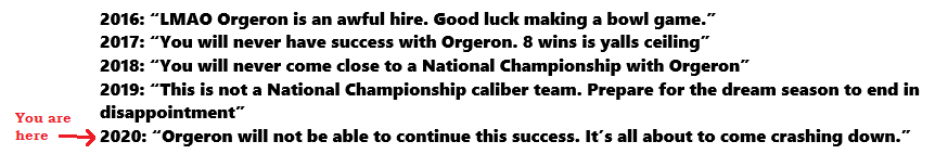 I digress though, because you must have missed where I said LSU wins 8-10, you know, like you did in 2017 and 2018