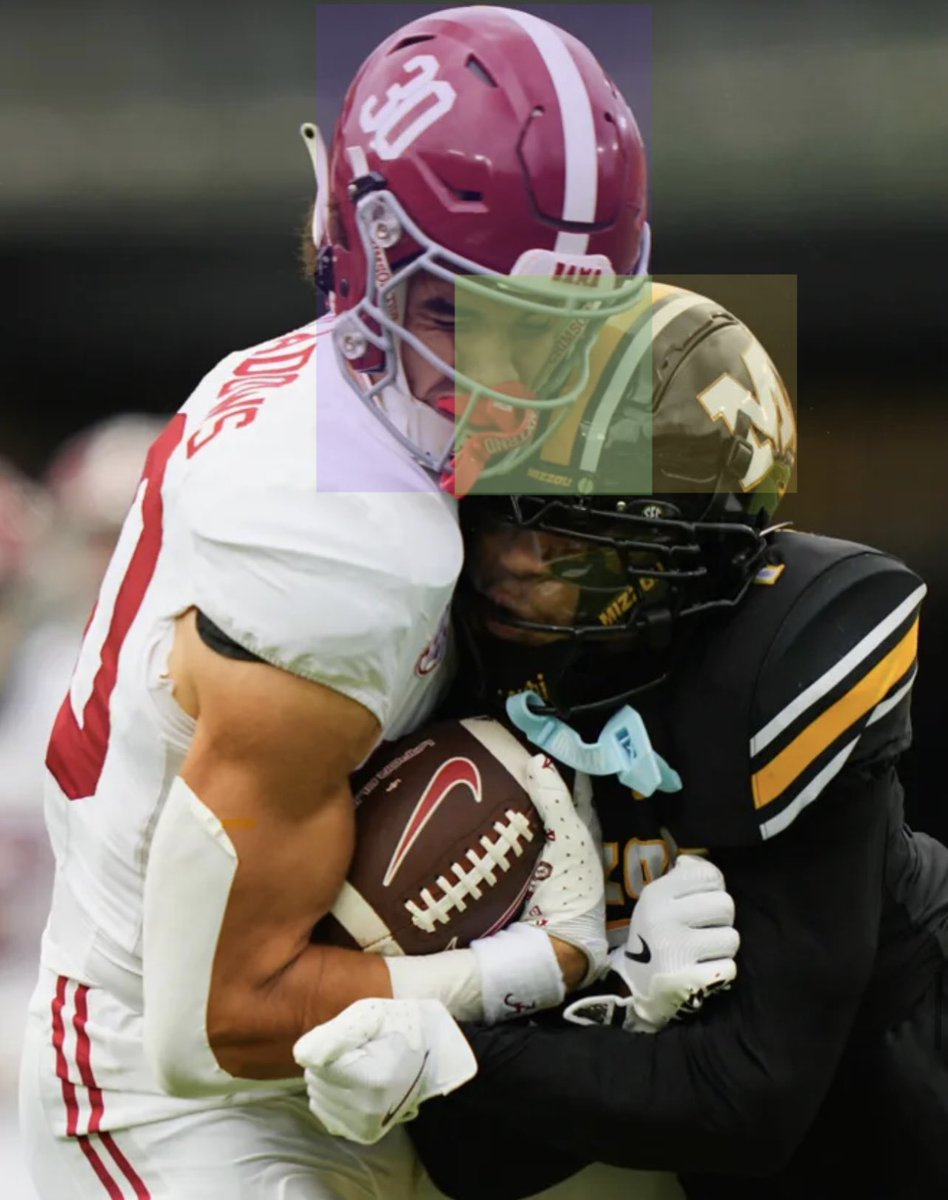 It might have been regional on when they were in commercial. I didn't see the replay at the time either. Helmet to helmet though. Even if the player turned sideways and didn't mean it, it still happened.