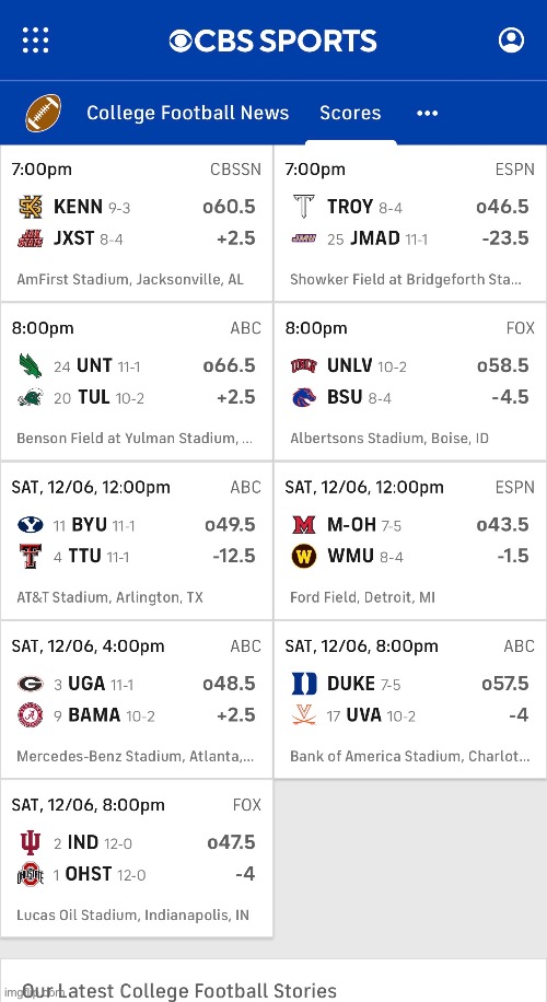 This weekend’s college football conference championship games with odds