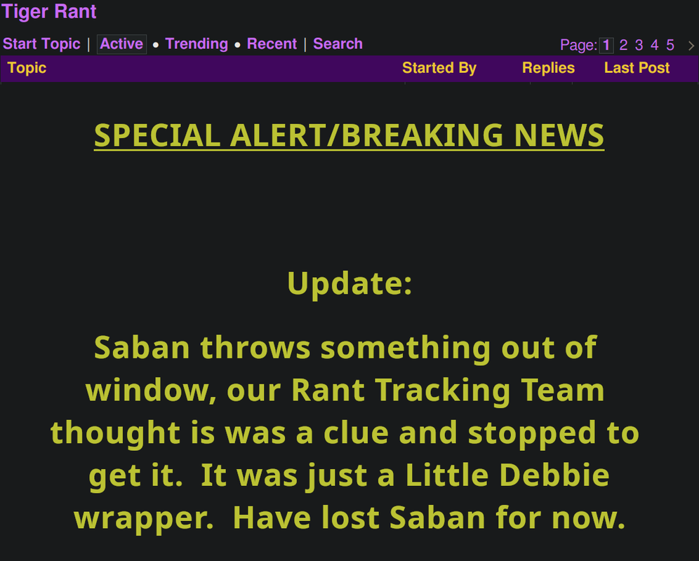 re: Tiger Rant is going nuts over Saban.