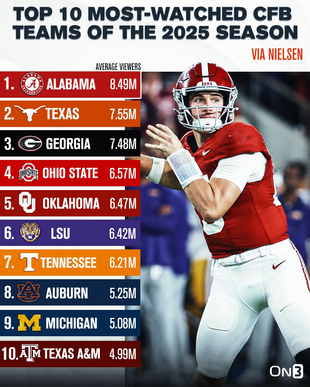 10th highest watched team without a single prime time big opponent on our schedule this year