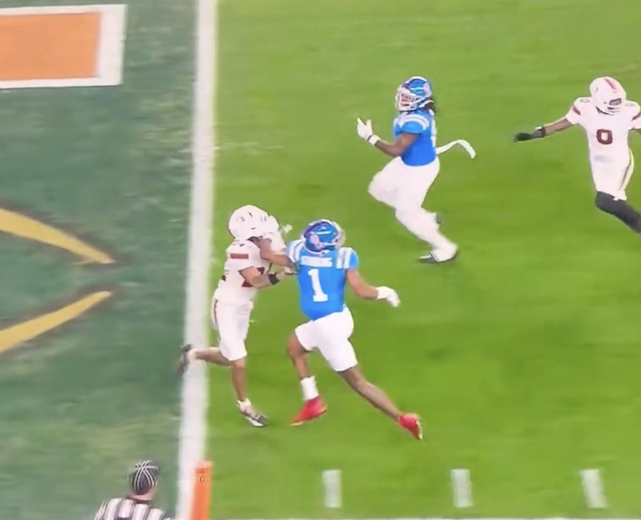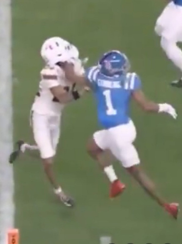 Look at the Miami DB being absolutely mugged by the Ole Miss WR.