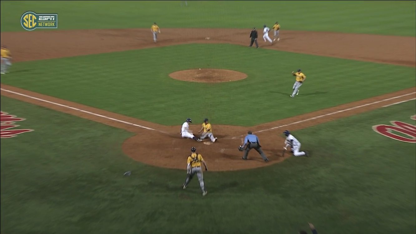 Umps review, it’s officially wild pitch walk off with bases loaded. Thomas Dillard gets in under the tag and Rebs win 7-6 to go 8-0. First time since 2008