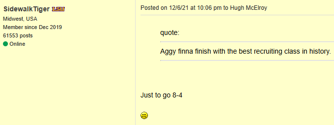 Uh...if I was an LSU fan, I would fail to see the humor in that. But, we know LSU fans are....different, or at least the ones on this forum are.