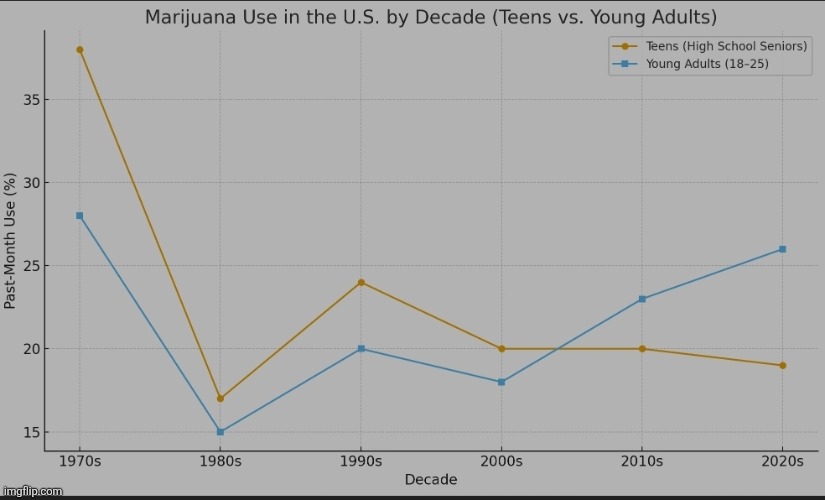 Peak decade for teen and young adult marijuana use overall.
