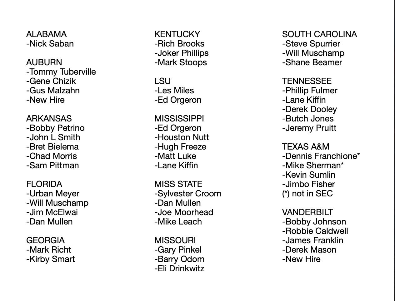 He's watched the entire league (even A&M & Mizzou) fire & hire at least one new coach.