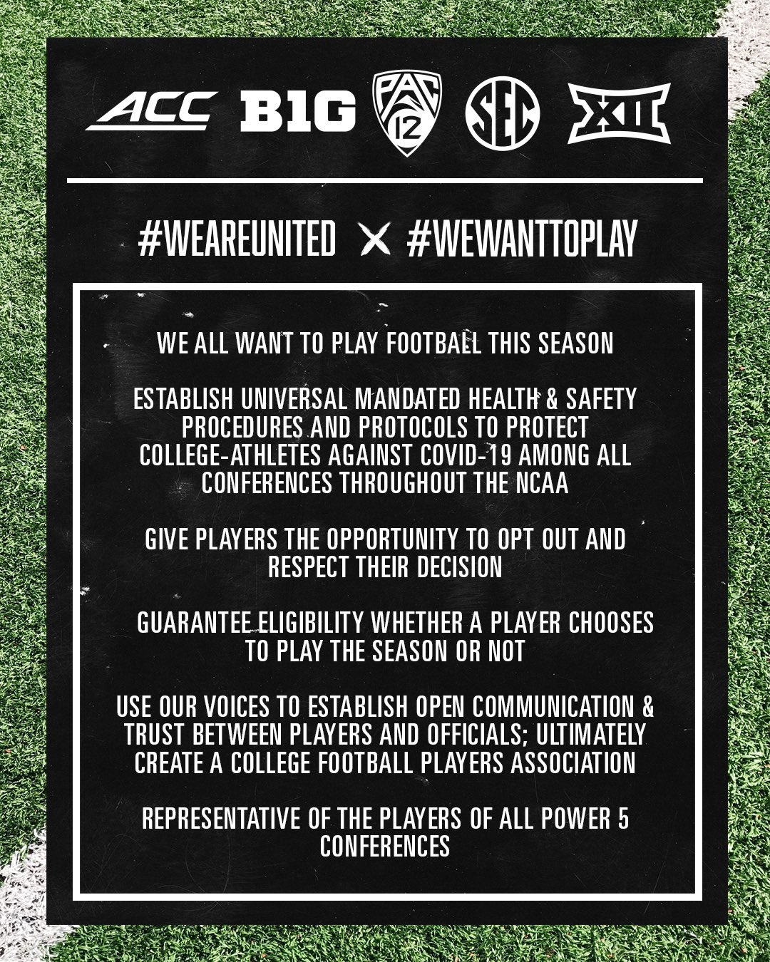 We want to play is now joining We are united and are now demanding a players association. It’s okay. No season. The end.