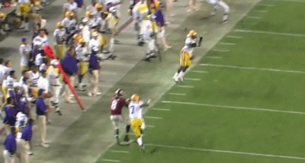 Look at his hands, he didn't have possession yet when he stepped out. That was one of the best calls in SEC history. Praise Mike Slive.