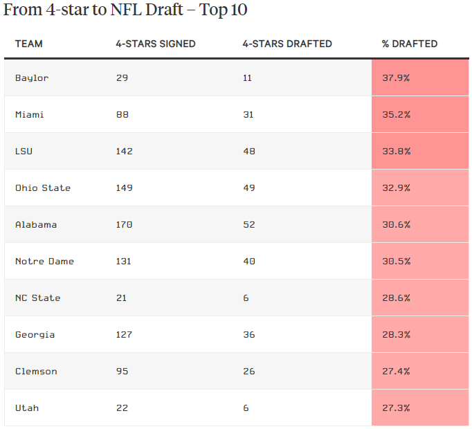 LSU was 3rd best and 2nd best overall at getting 4-star and 3-star players drafted. Better than Bama.