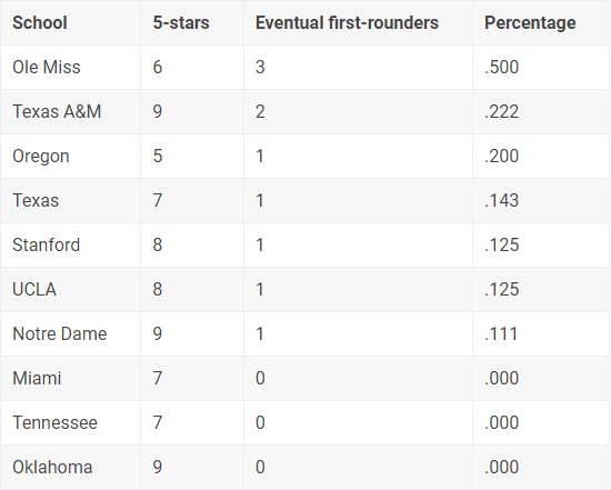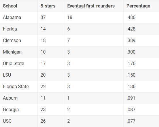 Yeah this is stupid. “Converting” a 5 star to a top NFL draft pick should be expected. Tell me who “converts” 1, 2, and 3 stars.