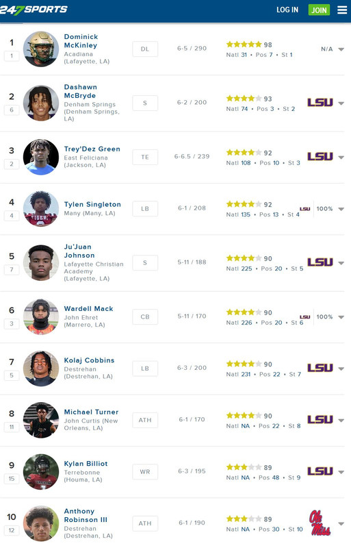 Crazy that this cycle Louisiana only has one five star and only two top 100 nationally ranked players.