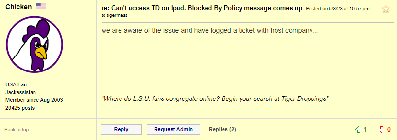The only thing I gained by clearing all history is I can view TD but can’t post there still.