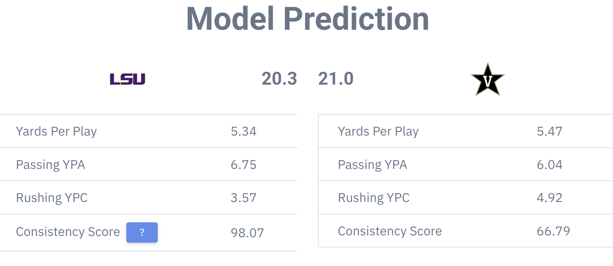 I'd tend to take LSU but Vandy's coming off a loss + a week off + playing at home. The pressure is all on LSU. Vandy losing is not going to shock anyone. They actually will play loose and do what they do best and score quickly esp. at home. does LSU have an offense that can match them if a shootout occurs? If it becomes a shootout I like Vandy's chances but I expect LSU's D to handle Pavia pretty effectively.