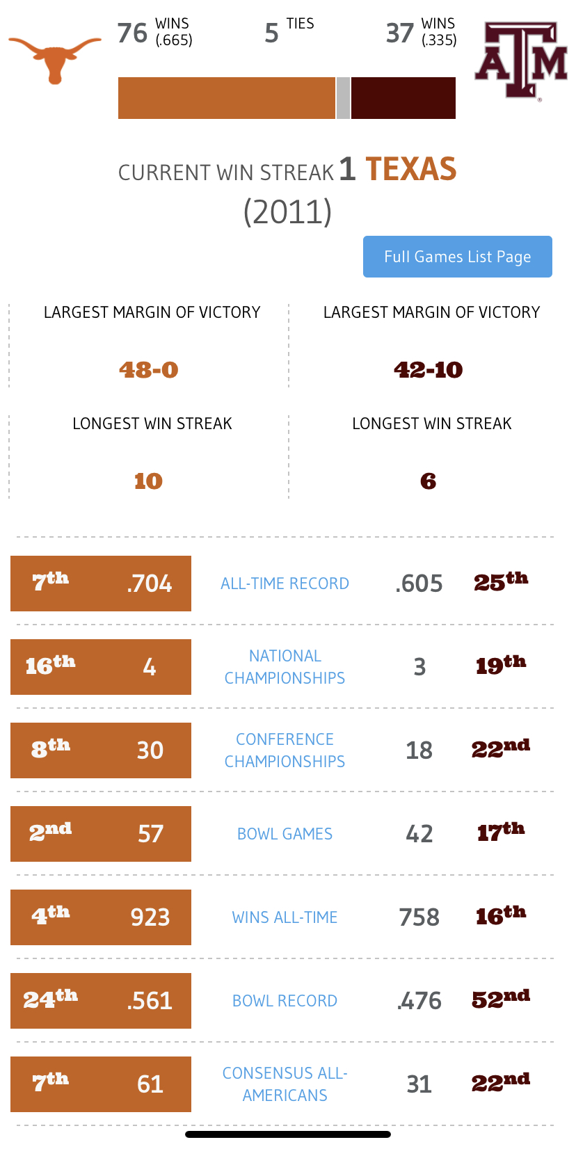 Better Football: 76-37-5 (Texas)
