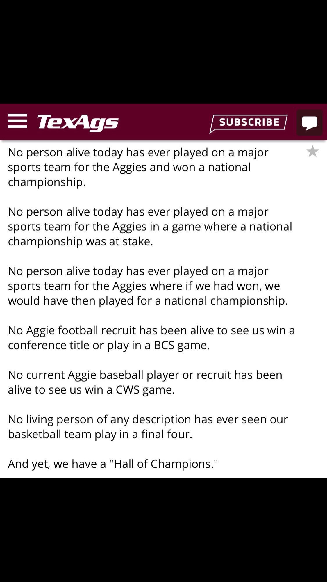 Texas A&M baseball wins in Omaha in my lifetime: ZERO
