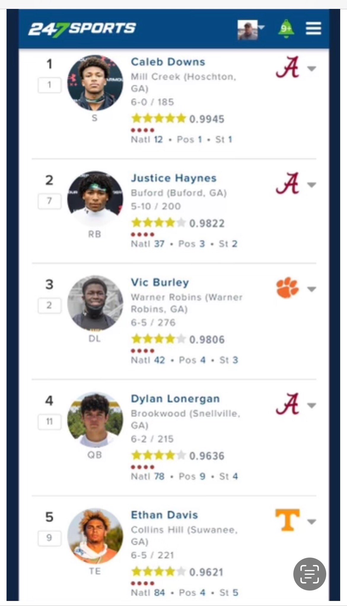 Kindof an off year in Georgia with only 1 5 star, still really good players