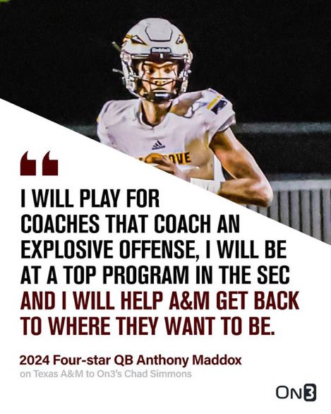 Anybody know anything about AJ Maddox. He is a QB from Mississippi with offers from Penn State and Alabama (but not that many other P5 programs!) who committed to