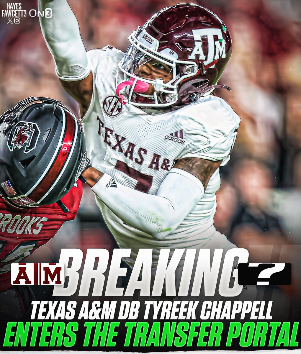 And the 5th Aggy starter enters the portal for today. DB Tyreek Chappell