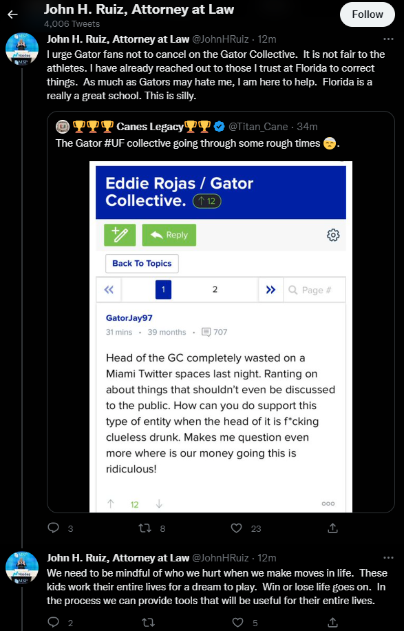 I don’t know Eddie Rojas. Nor did I know he was in charge of the collective, but to read some of the comments on 247, he’s an apparent drunk and drug head.