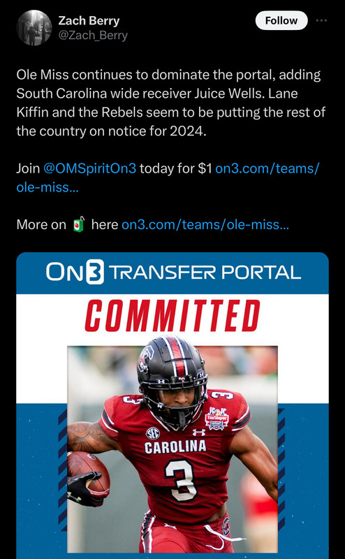 Former South Carolina 4* WR Transfer Juice Wells is a Reb